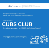 The Columbia University Institute of Human Nutrition (IHN), in partnership with the IHN Alumni Association (IHNAA), is proud to announce the relaunch of its alumni mentorship program, Cubs Club!